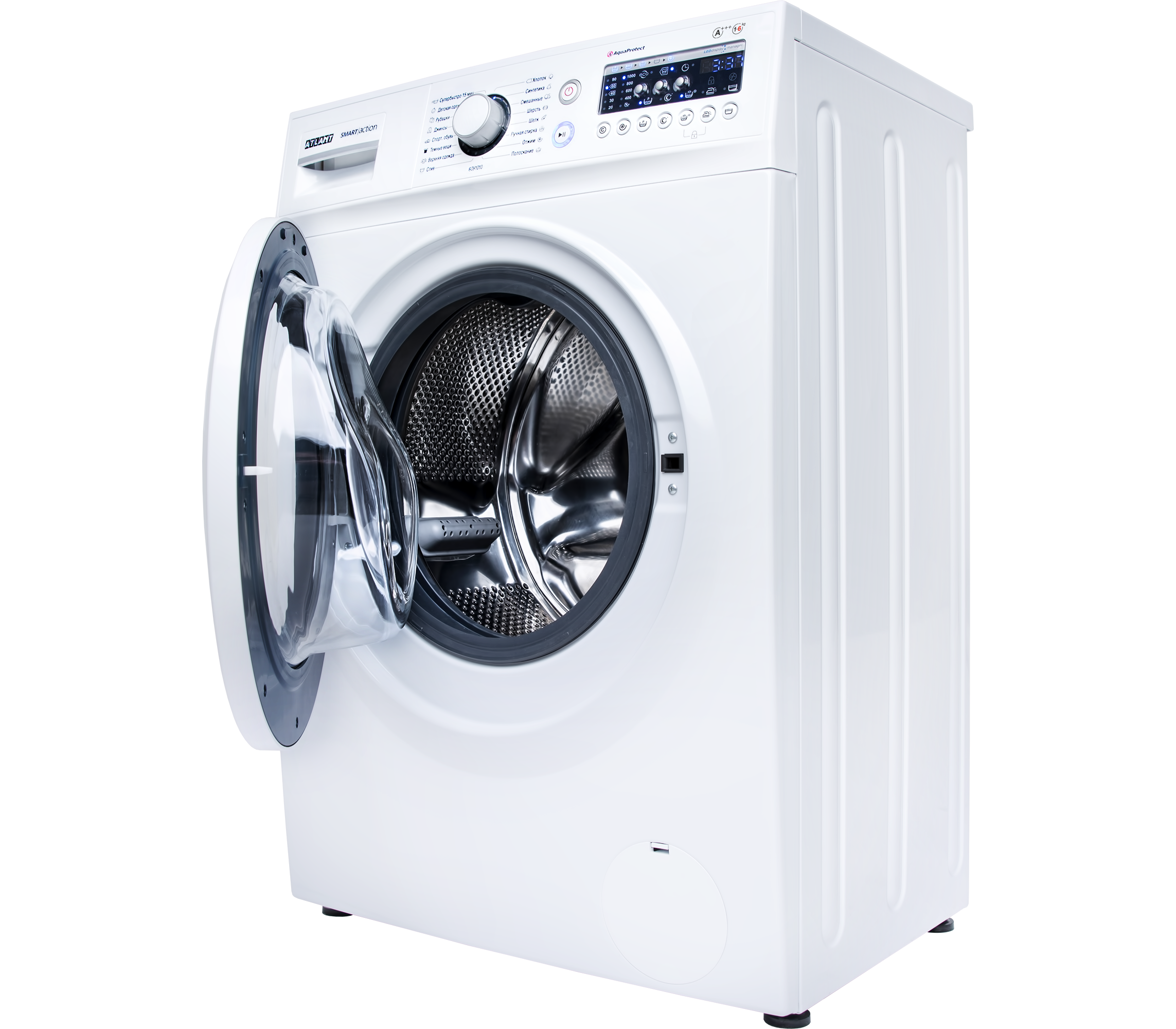 Для настройки параметров работы стиральной машины ATLANT СМА-60 У 1010-00 имеется кнопочная панель управления и поворотный регулятор, при помощи которого можно выбрать программу стирки. Функционал этой модели включает в себя 16 наиболее актуальных для пользователя программ стирки. Имеется функция отсрочки запуска (до 24 часов максимально), позволяющая вам запрограммировать время старта стирки. Об окончании цикла стирки вас оповестит звуковой сигнал.