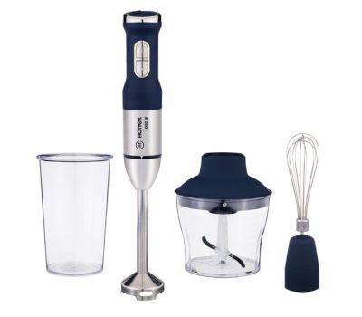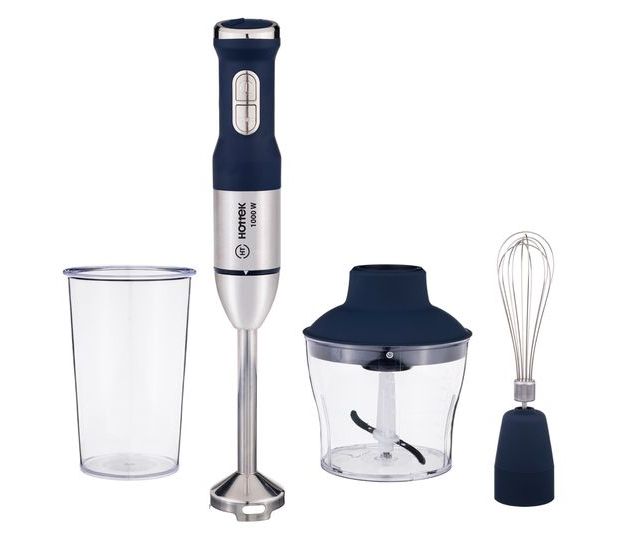 Блендерный набор HT-975-100 совмещает в себе функции блендера, чоппера и миксера для идеальной обработки продуктов. Благодаря мощному мотору (1000 Вт) прибор быстро и эффективно измельчит продукты любой твердости. В чаше измельчителя (чоппера) объёмом 600 мл Вы сможете измельчать продукты, например готовить фарш. В мерном стакане объёмом 800 мл возможно измельчение и перемешивание продуктов. А с помощью насадки-венчика Вы сможете взбивать крем для приготовления десертов. Имеется плавная регулировка, что позволит наиболее точно установить оптимальный режим для обработки различных видов продуктов. Готовьте супы-пюре, фарш, соусы, детское питание, коктейли, кремы, десерты при помощи стильного, элегантного блендерного набора Hottek, который станет незаменимым на Вашей кухне!