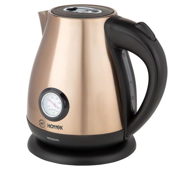 Чайник HT-960-021 в стиле "ретро" - это: нержавеющая сталь, отсутствие запаха пластика; встроенный термометр - следите за температурой воды в чайнике; бесшумное кипячение; удобный носик с фильтром - не протекает, когда наливаете воду; объём 1,7л, при этом компактный размер; автоотключение, в т.ч. при отсутствии воды в чайнике.