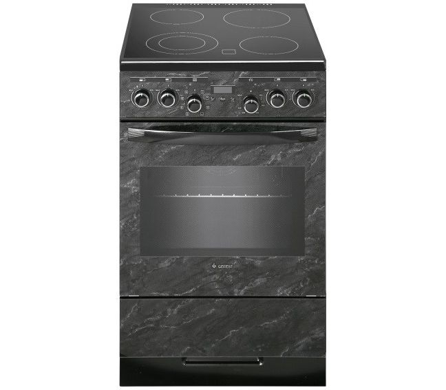 Электрическая плита GEFEST ЭП Н Д 5560-03 0053 выпускается в черном цвете с рисунком мрамор. Варочная панель покрыта стеклокерамикой. Всего встроено 4 конфорки, в том числе одна двухконтурная, в которой можно выбирать площадь нагревания. По мощности плита потребляет 7.4 кВт. Управляется электрическая плита при помощи кнопок. Встроенный индикатор остаточного тепла обеспечит безопасность от ожогов. На дисплее отображаются данные о времени, температуре, таймер и др. Также прибор оснащен выдвижным ящиком для посуды.