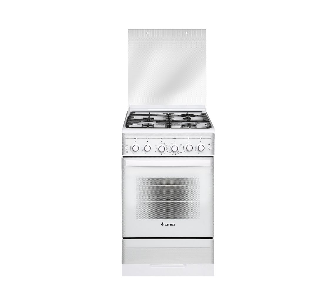 Газовая плита GEFEST ПГ 5300-02 0040 − функциональное устройство, выполненное в белом корпусе размером 50x85x58.5 см. Плита создает комфортные условия для приготовления любимых блюд. В верхней части прибора находится варочная поверхность с 4 конфорками различного размера, которые создают разную площадь пламени, чтобы вы могли готовить в любой посуде. Для защиты конфорок и безопасной эксплуатации используются чугунные решетки. Благодаря решеткам кастрюли и сковородки обретут устойчивость на поверхности. В нижней части GEFEST ПГ 5300-02 0040 находится духовка объемом 52 л с поддержкой гриля. Горелки варочной панели и духовки поддерживают электроподжиг, активация которого происходит при нажатии отдельной кнопки. Безопасность эксплуатации обусловливает поддержка газ-контроля. Эта функция прекращает подачу газа, когда пламя затухает. Для управления прибором на переднюю панель вынесены 6 поворотных ручек, 4 из которых позволяют настраивать интенсивность пламени горелок, а 2 обеспечивают управление духовкой.