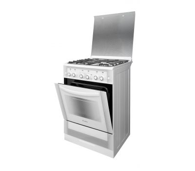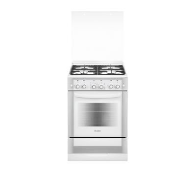 Газовая плита белого цвета, ширина 60 см. Классический дизайн, фасад и защитная крышка рабочего стола - стеклянные. Плита укомплектована всем необходимым для ежедневного комфортного использования. Горелки с электроподжигом, в жарочном шкафе установлен газ-контроль. Духовка - вместительная, нагрев можно контролировать, установив температуру лишь раз (термостат). А гриль и вертел с электроприводом помогут достичь равномерного прогрева и замечательной хрустящей мясной корочки. Варочная поверхность с 4 конфорками различного диаметра и мощности защищена составными и фигурными чугунными решетками, а брызги масла при обжаривании на сковороде попадают на крышку, не пачкая стен.