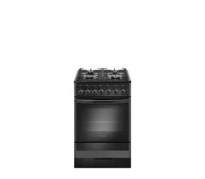 Варочная поверхность с 4 газовыми горелками оборудована электроподжигом, розжиг происходит при нажатии на кнопку на панели управления. Конфорки надежно защищены чугунными составными решетками. Духовой шкаф работает в нескольких режимах: классический нагрев с регулировкой и поддержанием температуры (термостат), электрический гриль включается отдельно. Для удобства использования, вертел и направляющие для противней выполнены съемными.