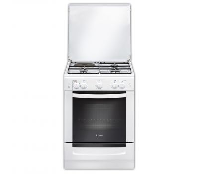 Белая плита шириной 60 см, поставляется с металлической защитной крышкой и выдвижным ящиком для хранения посуды и противней. Классический дизайн, современные материалы в отделке и индикация включения нагрева, все газовые горелки рабочего стола и духовки с электроподжигом.  Варочная поверхность с нанесенной прочной эмалью, легкой в очистке. Три газовые конфорки различного диаметра и мощности дополнены чугунной электрической конфоркой. Жарочный шкаф оснащен термоуказателем нагрева и системой газ-контроля, перекрывающей газ в случае угасания пламени. Ключевые преимущества: