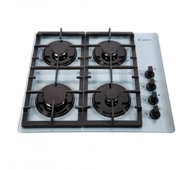 Газовая варочная панель шириной 60 см, стеклянная рабочая поверхность в серебристом цвете. Управление газовыми горелками осуществляется поворотными переключателями, вынесенными на край панели. Мощность горения определяется пользователем прибора самостоятельно, для экономного горения предусмотрено фиксированное положение - малое пламя. Четыре конфорки (две стандартные, большая и малая) оснащены автоматическим электроподжигом, встроенным в ручки управления и газ-контролем. Фигурные чугунные решетки надежно защищают горелки и выдерживают вес тяжелой металлической посуды.Размеры монтажного проема Гефест СГ СВН 2230 К6 - 55.4x48.6 см (ШхГ), сетевой шнур и вилка в наличии.