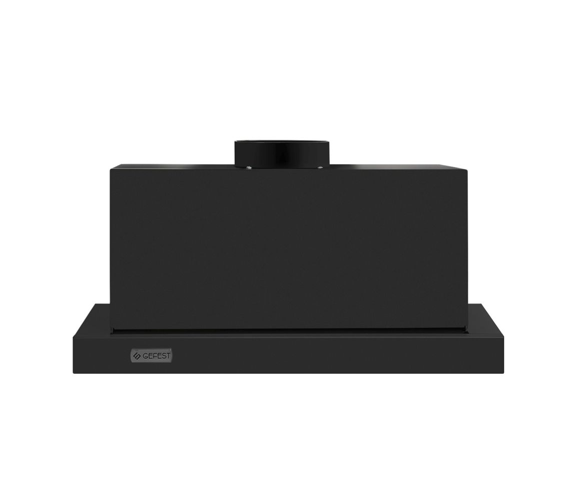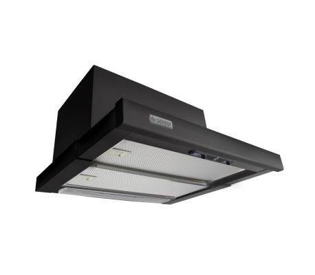 Встраиваемого типа воздухоочиститель, ширина 50 см. Фасад покрыт эмалью черного цвета, под нижней рамкой расположены два слайдера-переключателя:включения дополнительного освещения (2 плафона) и увеличения/уменьшения уровня мощности вращения вентилятора. Максимальная производительность в 600 м3/ч достигается в вытяжном режиме, прибор может работать и в замкнутом цикле (рециркуляция). Уровень шума при работе не более 65 дБА.