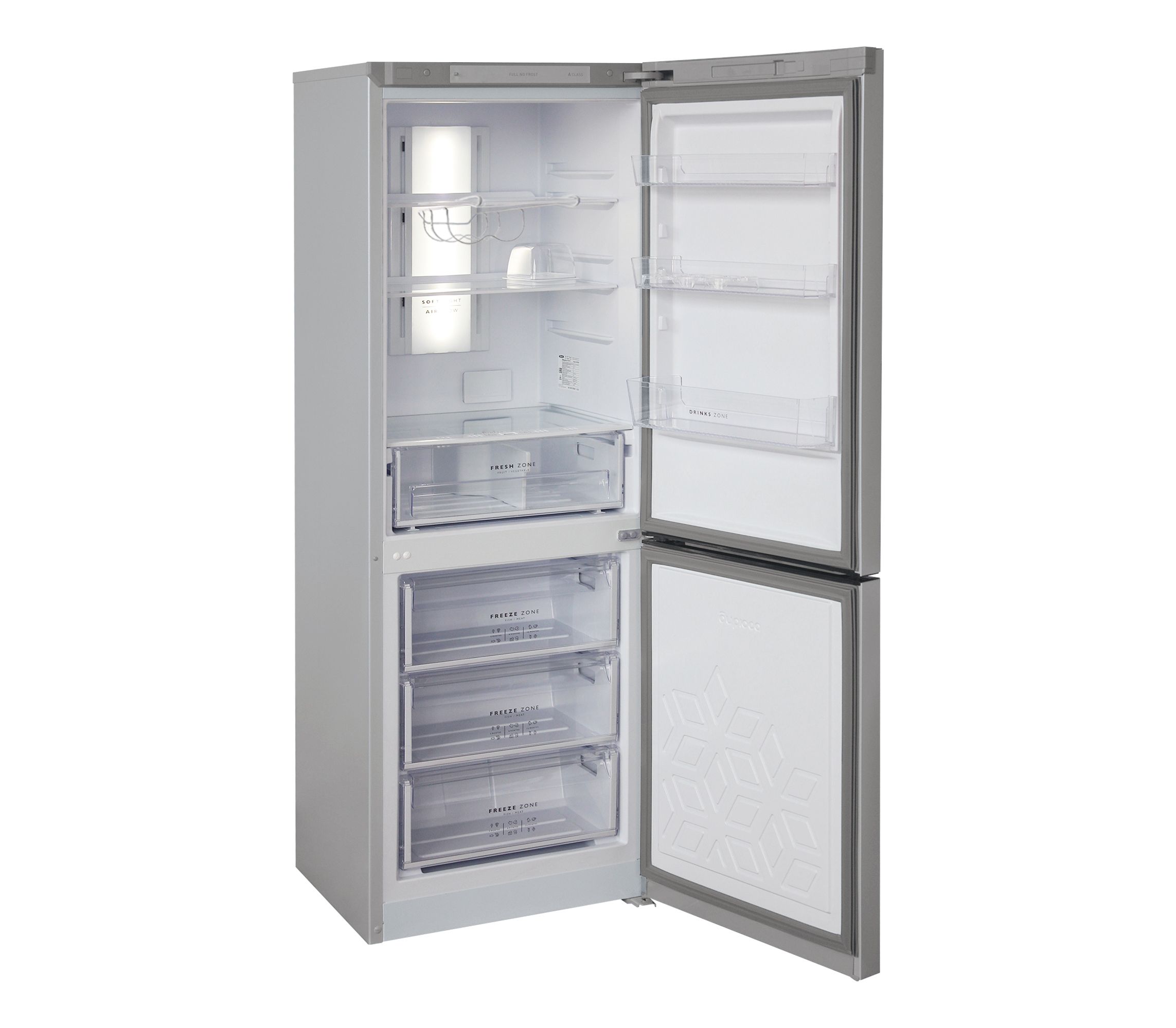 Цвет Серебристый металлопласт Общий объем, л 310 Объем холодильной камеры, л 210 Объем морозильной камеры, л 100 Класс энергоэффективности A Количество камер 2 Расположение морозильной камеры Нижнее Управление LED дисплей Система Full No Frost Да Количество компрессоров 1 Суточный расход электроэнергии, при температуре окружающего воздуха 24°C, кВтч 0.97 Климатический класс N,ST Возможность перевешивания двери Да Максимальный уровень шума, дБ 43 Гарантийный срок, г 3 - Габариты