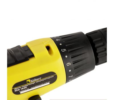 Благодаря динамическому тормозу шуруповерта KOLNER KCD 18/2С вращение патрона моментально останавливается нажатием кнопки включения.