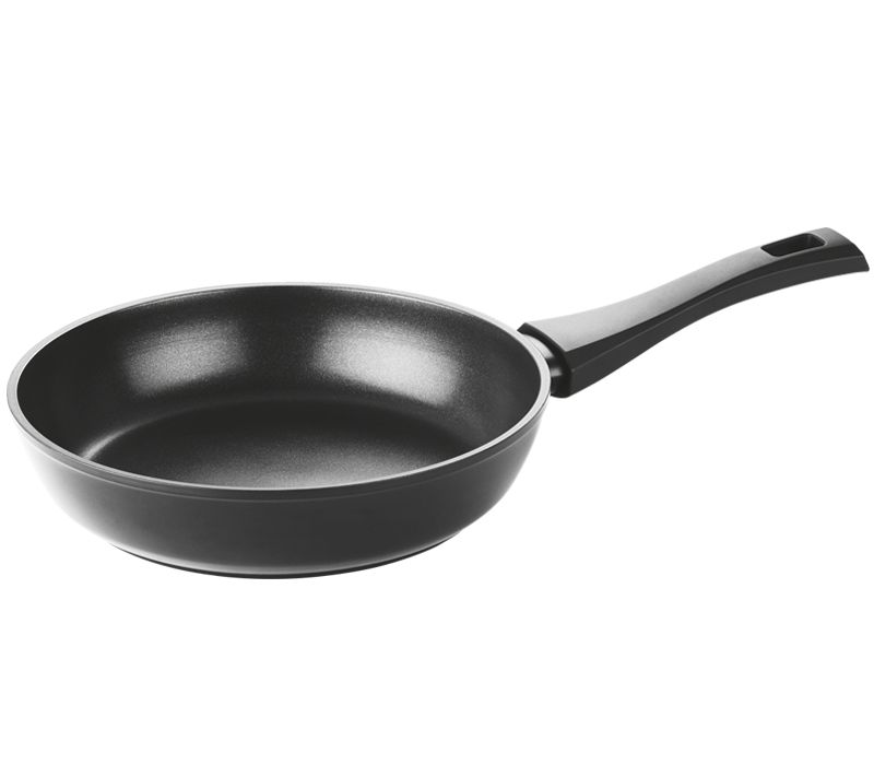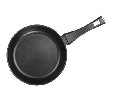 Основание ручки приварено к сковороде. Такой способ крепления не дает ручке нагреваться. Материал рукоятки обладает стойкостью к высоким температурам и не плавится. Угол между стенками и дном гораздо меньше, чем у обычных сковород, что увеличивает вместимость и полезный объем. Покрытие американской компании Whitford отлично защищает сковороду от коррозии. Данный тип антипригарного покрытия является самым используемым покрытием в мире. Не содержит и не выделяет перфтороктановую кислоту PFOA.
