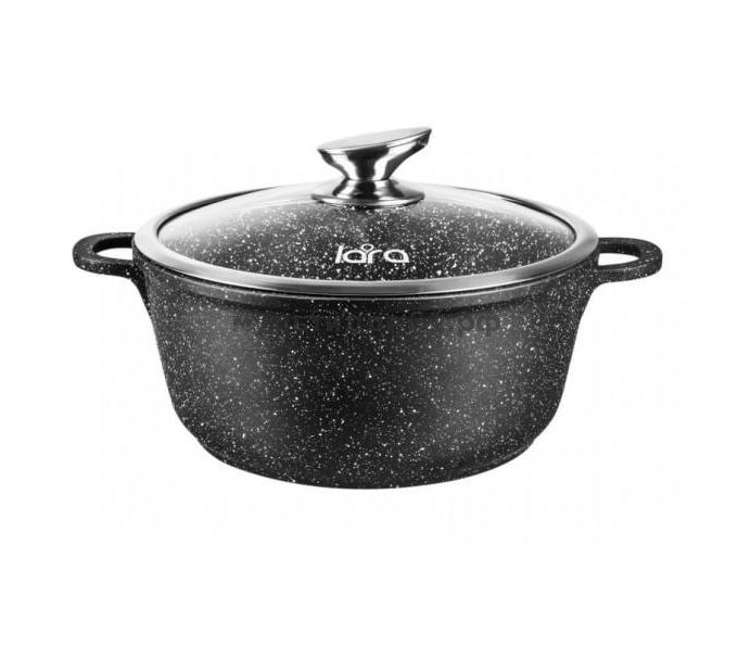 Кастрюля LARA LR02-206 из литого алюминия объемом 6.1л с мраморным антипригарным покрытием. Ручки литые металлические. Готовить в такой посуде легко и приятно. Дно индукционное. Подходит для всех видов плит. В комплекте идет стеклянная крышка с паровыпуском.