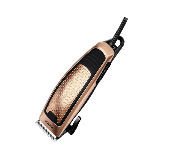 Машинка для стрижки Centek CT-2129 − удобное приспособление, созданное для стрижки головы. Модель выполнена в золотистом корпусе с черными вставками, особенность которого в эргономичной форме. Это позволяет удобно разместить прибор в руке, сделав процесс стрижки максимально комфортным. Питание машинка получает от сети. Устройство позволяет делать стрижку длиной до 12 мм: настраивать этот показатель можно сменой насадок и регулировкой. Всего допускается 5 установок длины.