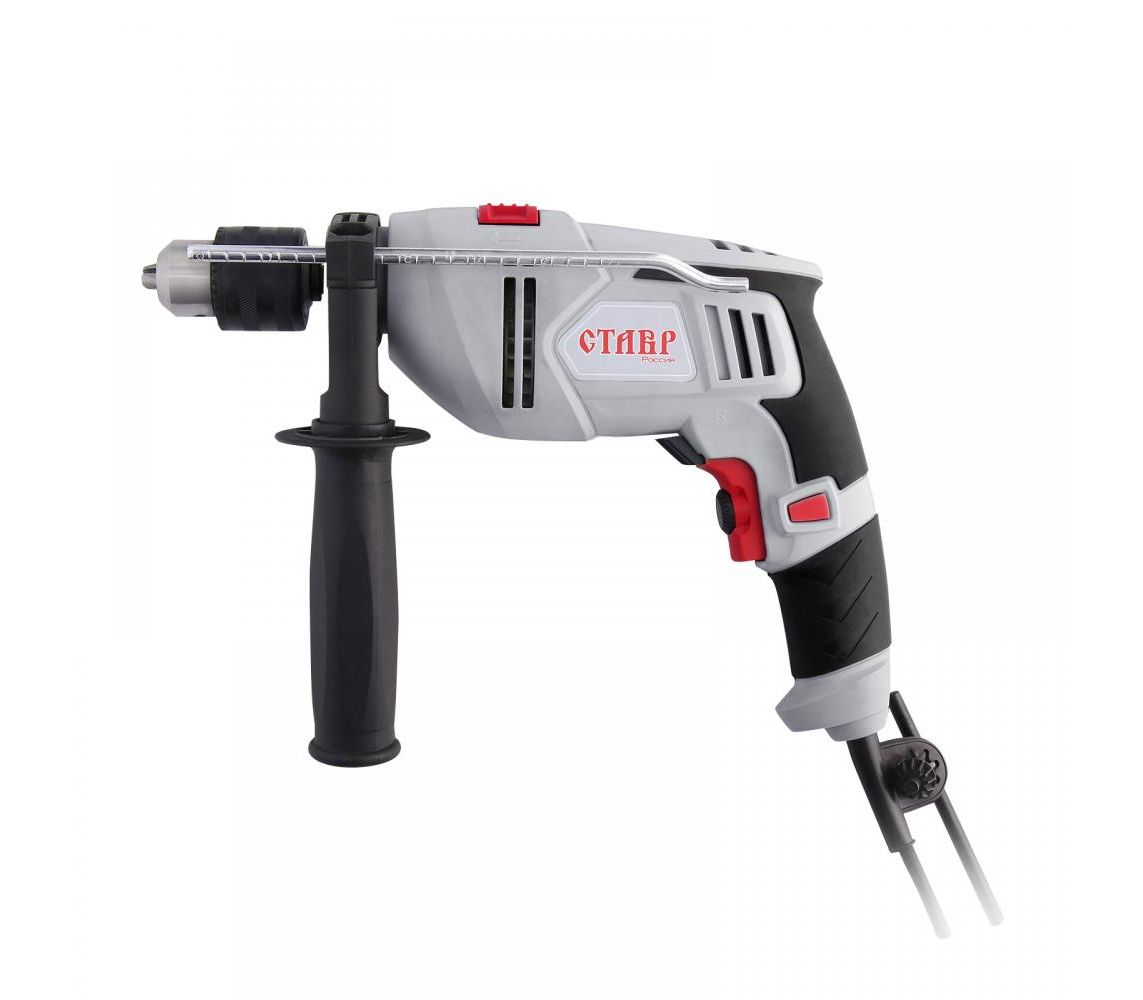 - Комплектация: дополнительная съемная рукоятка, глубиномер,ключ патрона, угольные щетки (запасной комплект)